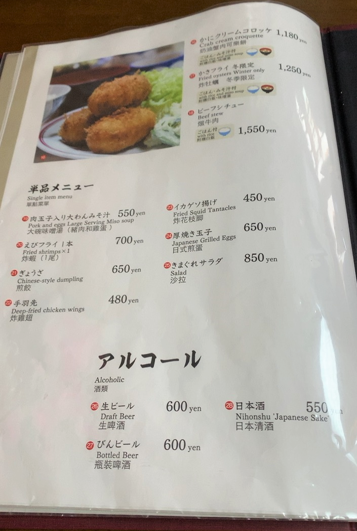 メニュー。