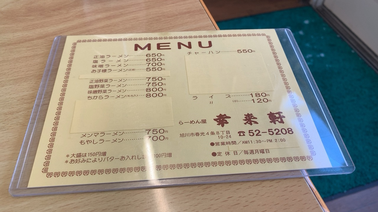 メニュー。
