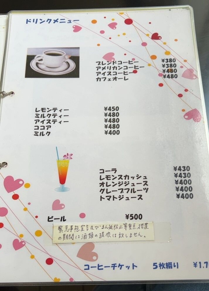 ドリンクメニュー。