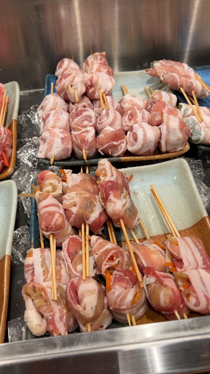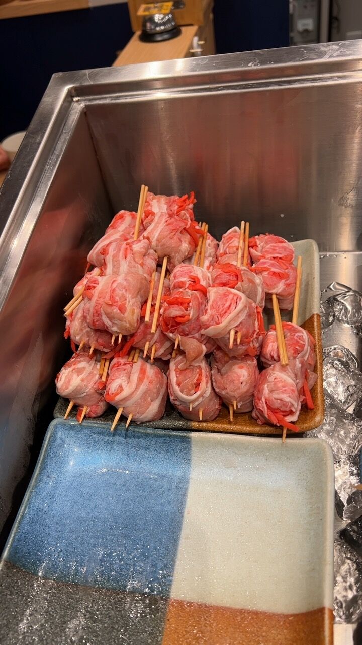 こんな感じで具材を豚バラで巻いたものを焼き上げてくれます。
