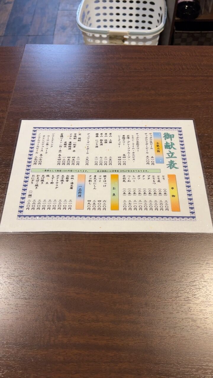 メニュー。
