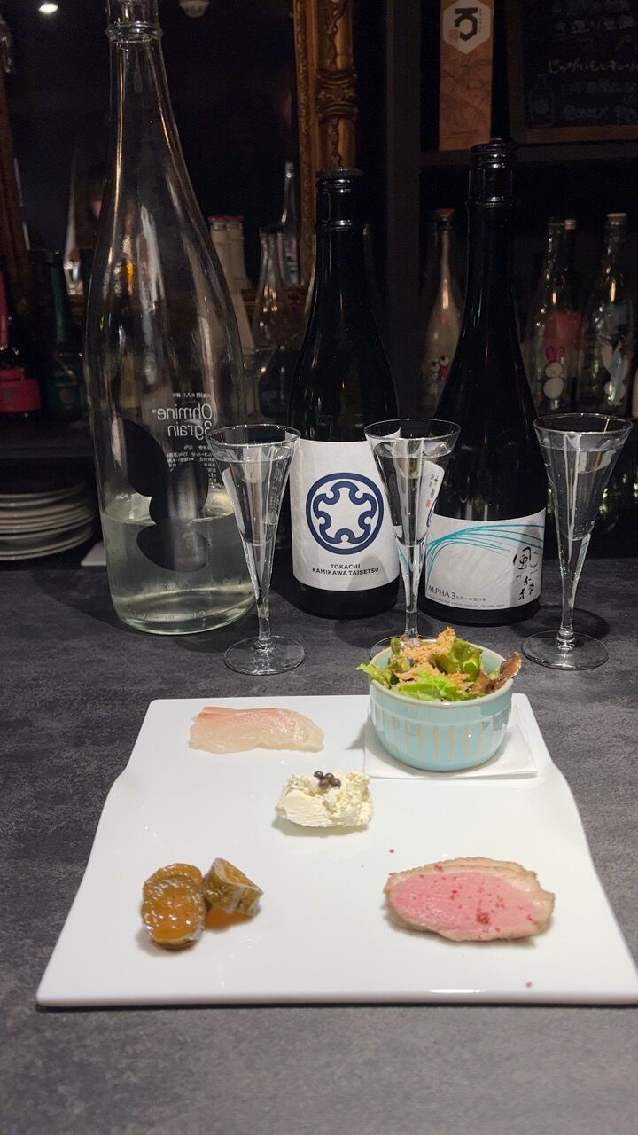 異なる3種の日本酒を味わいながらアテをつまみ。