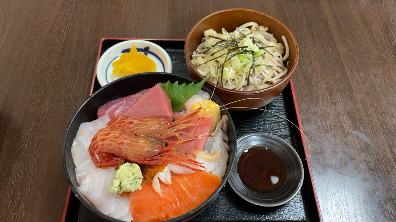 本日の海鮮丼に冷たい蕎麦にしてみました。
