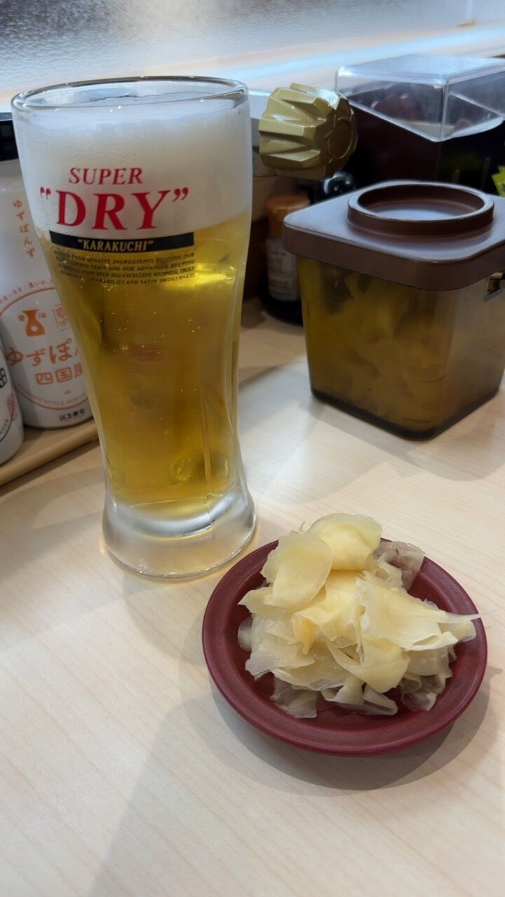 生ビールとガリです。