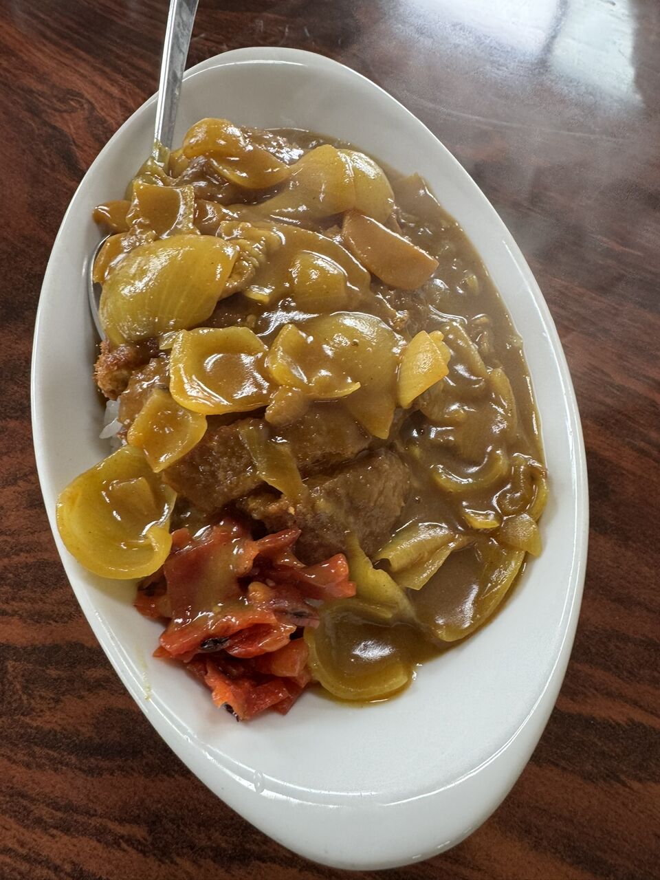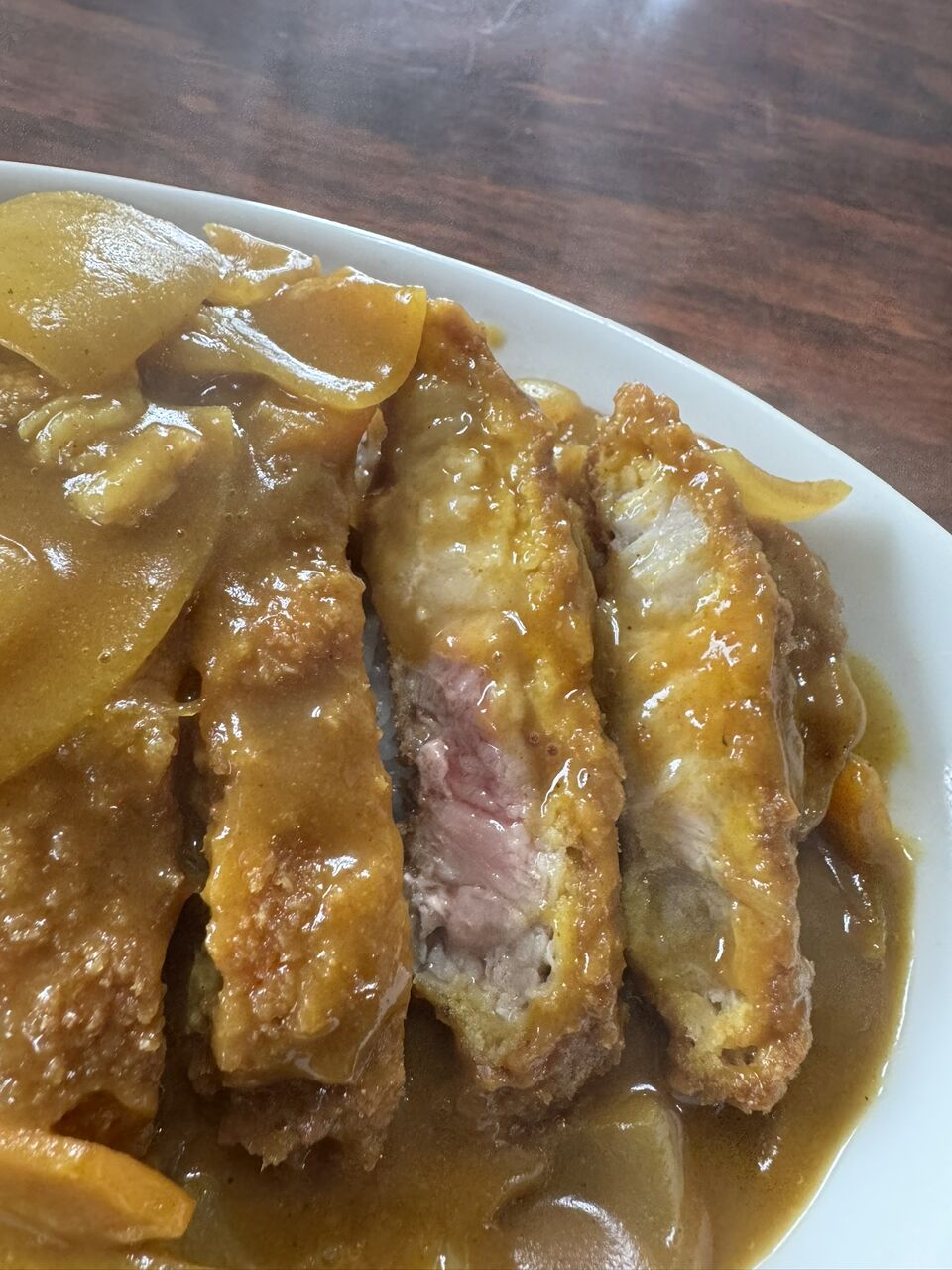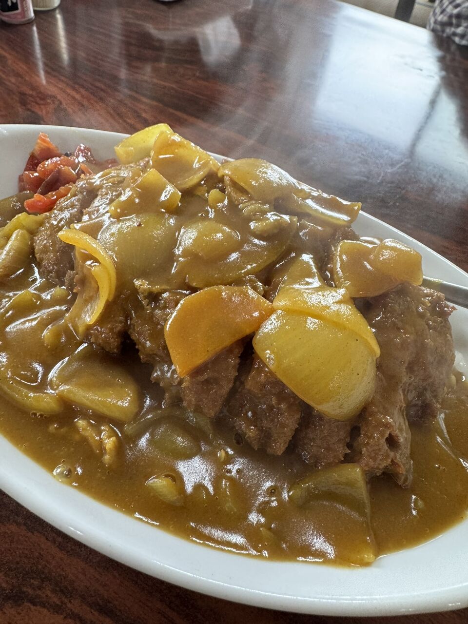 具沢山のカレールーに揚げたてのカツがど~んと。